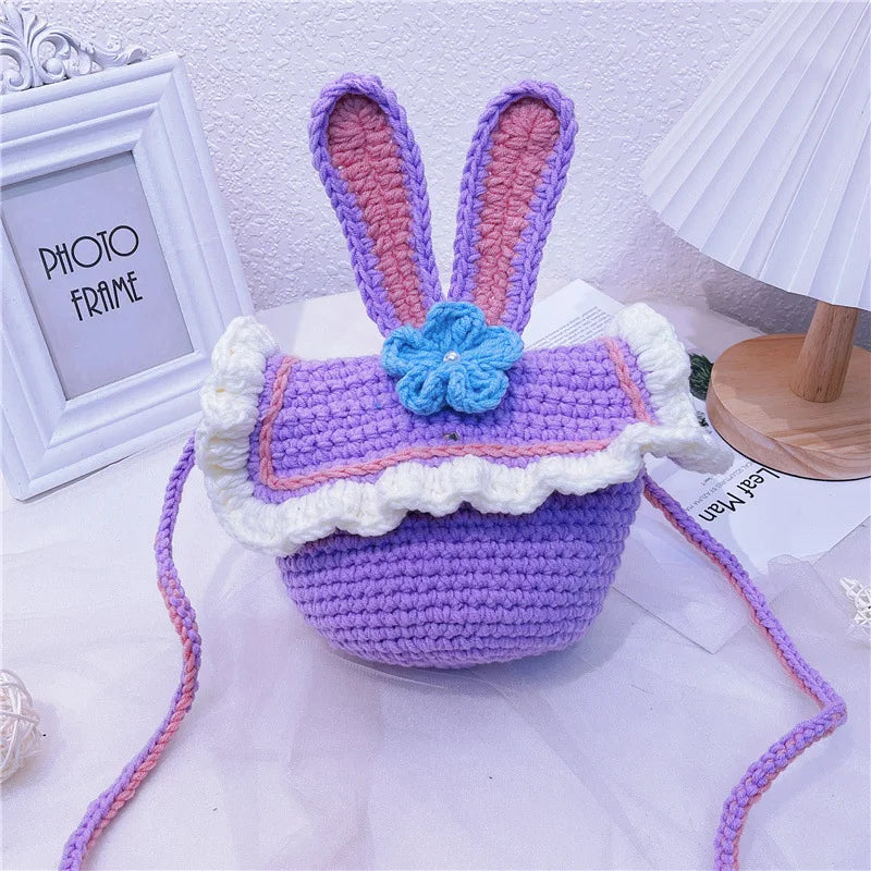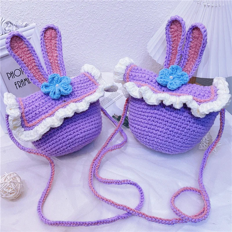 Adult Girls Star Rabbit Hand Woven Bag Ins DIY Shoulder Bag Purple