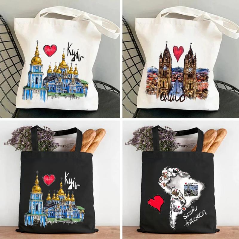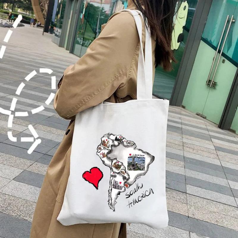 Africa Australia Map Bissau Bogota Brussels Ink Painting Women Canvas Shopper Ba