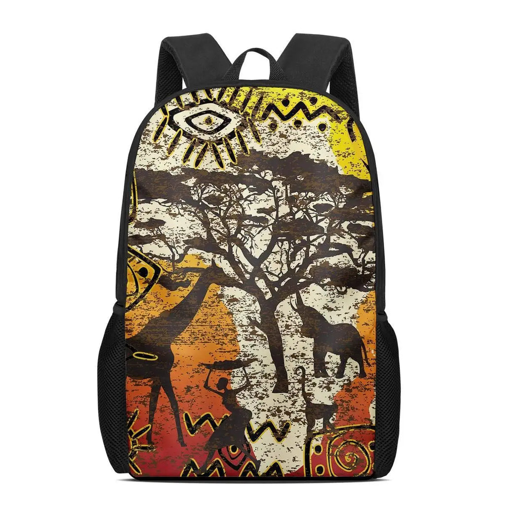 This African-themed backpack features a mysterious totem pattern, making it a unique school bag for teenagers. It's a great gift for kids with its vibrant design and functionality.