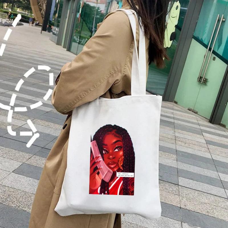 African Melanin Poppin American Sexy Girl Women Canvas Shoulder Handbags