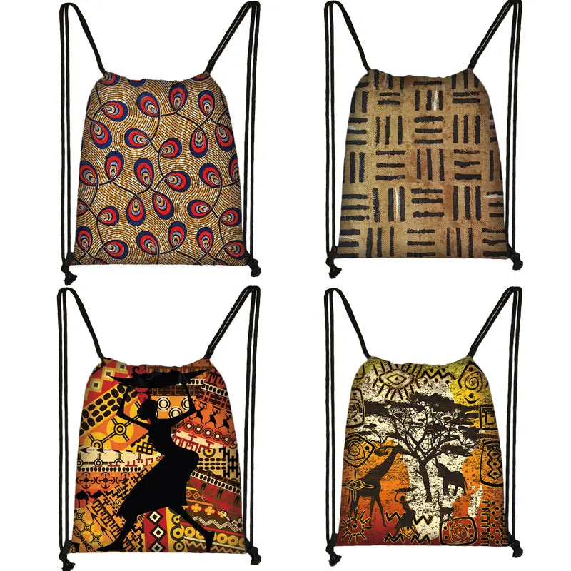 African Style Backpack Kids School Bags Drawstring Afro Ladies Print