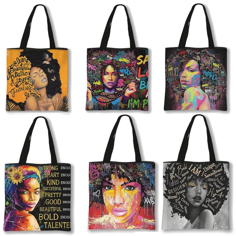 Afro Girl Print Shoulder Bag Africa Women Handbag Ladies Shopping Bag