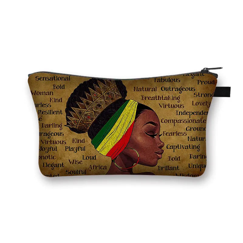 • Portable cosmetic bag with cartoon afro girls pattern