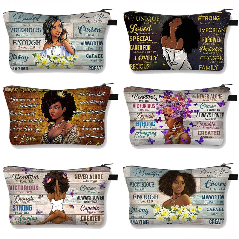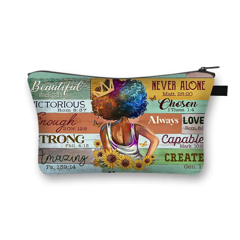 Afro Girls Pattern Cosmetic Bag - God Says You Are
