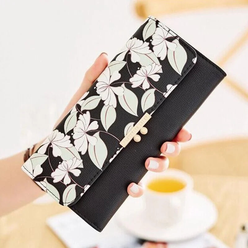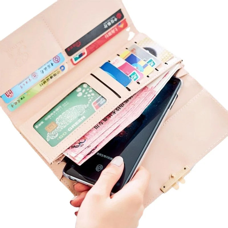 This Aibu long wallet features a three-fold design with a zipper closure. Perfect for organizing your cards, cash, and more.