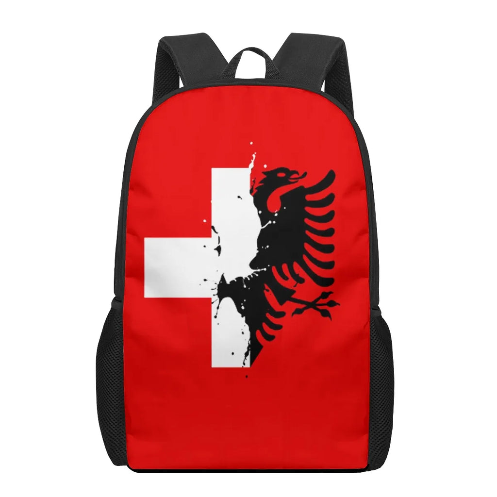 Albania Flag Kids School Bag Printing Backpack Shoulder Bag Boys Girls Book Bags