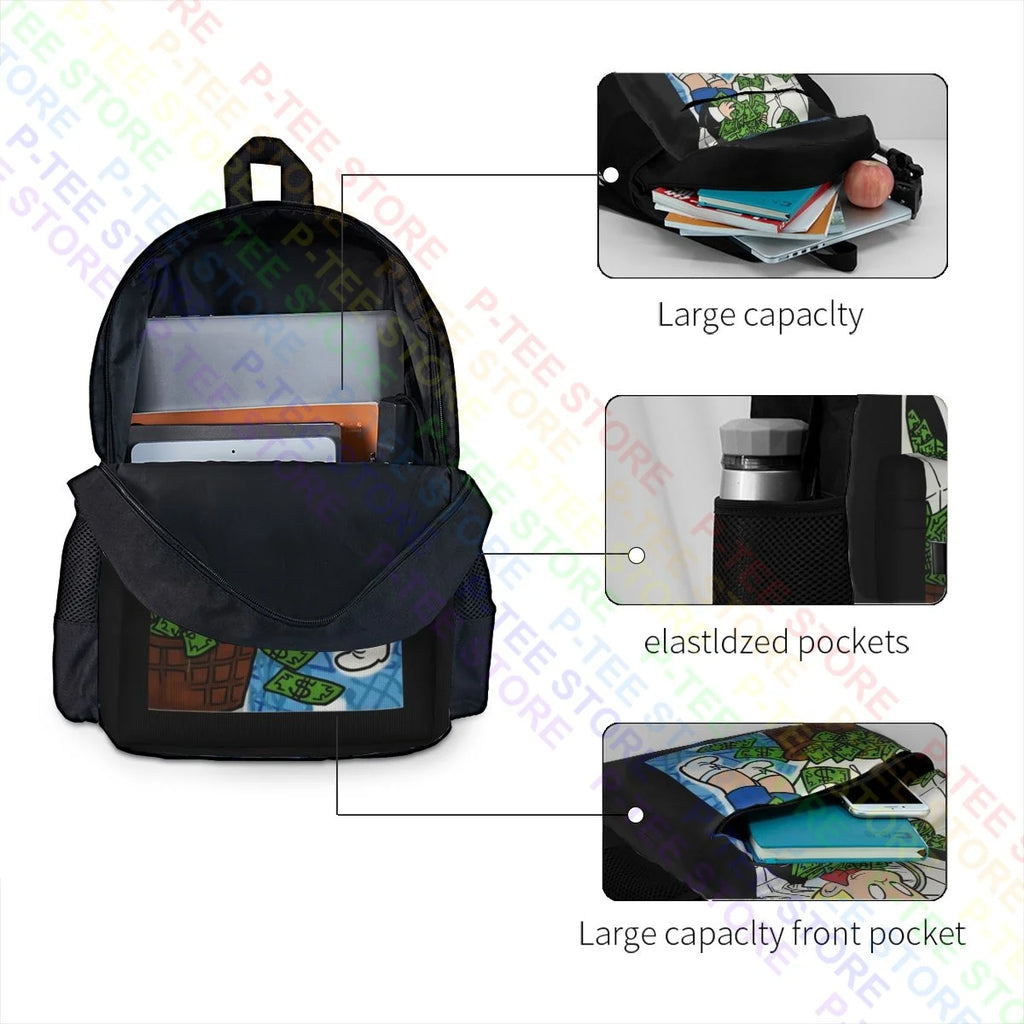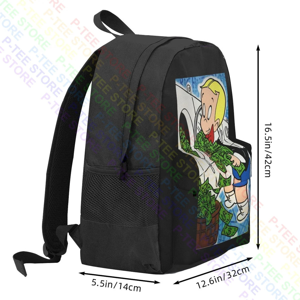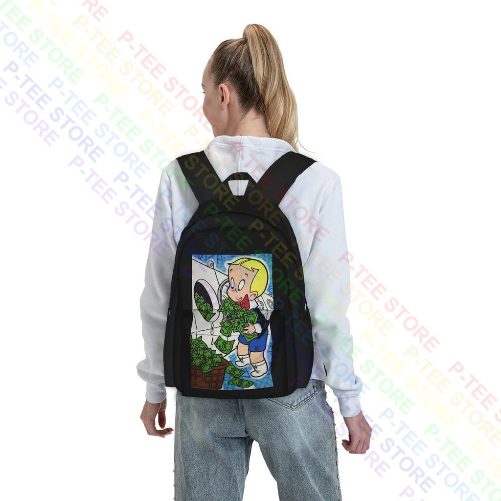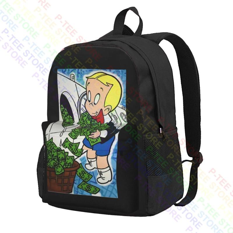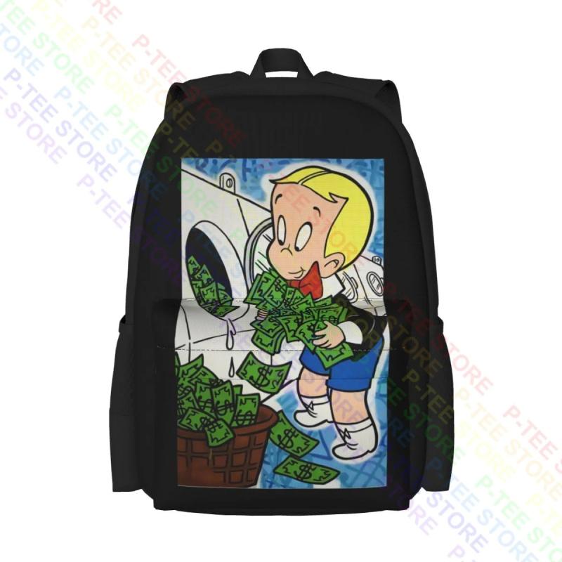 Stay stylish and organized with this large capacity backpack featuring Alec Monopoly's Richie Rich artwork. Perfect for outdoor activities and sports.