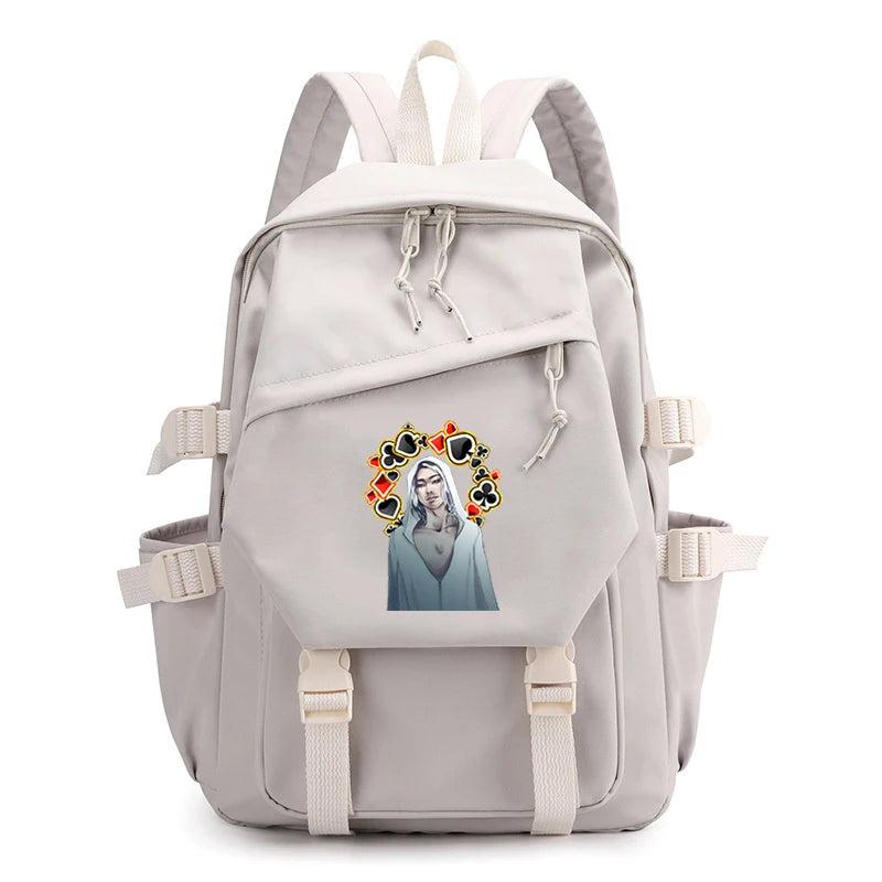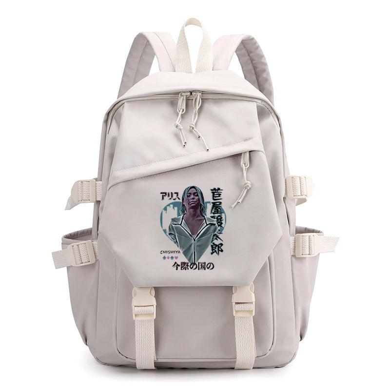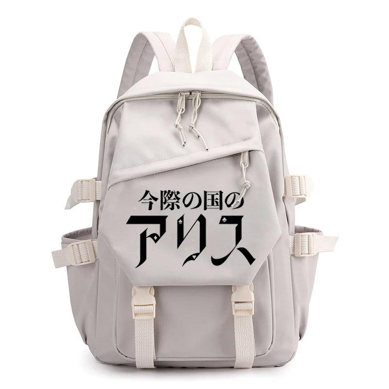 Get ready for school or a day out with this unique Alice in Borderland Poker Print Backpack featuring a Harajuku Games design. Ideal for girls and boys.
