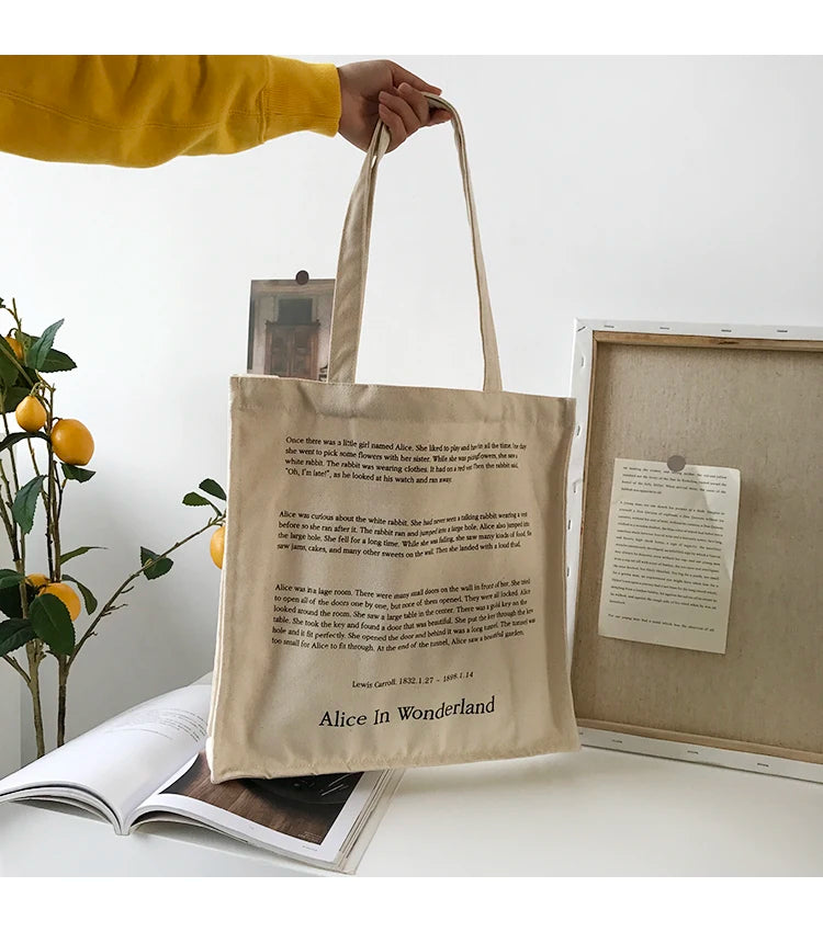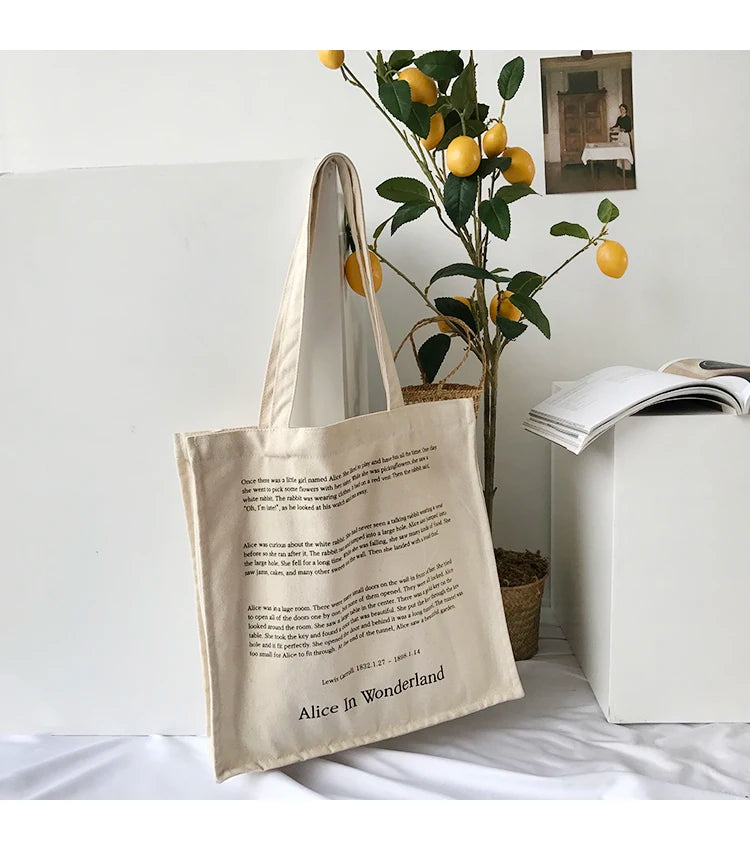 Alice Printed Large Capacity Women Tote Bag Canvas Travel Handbag