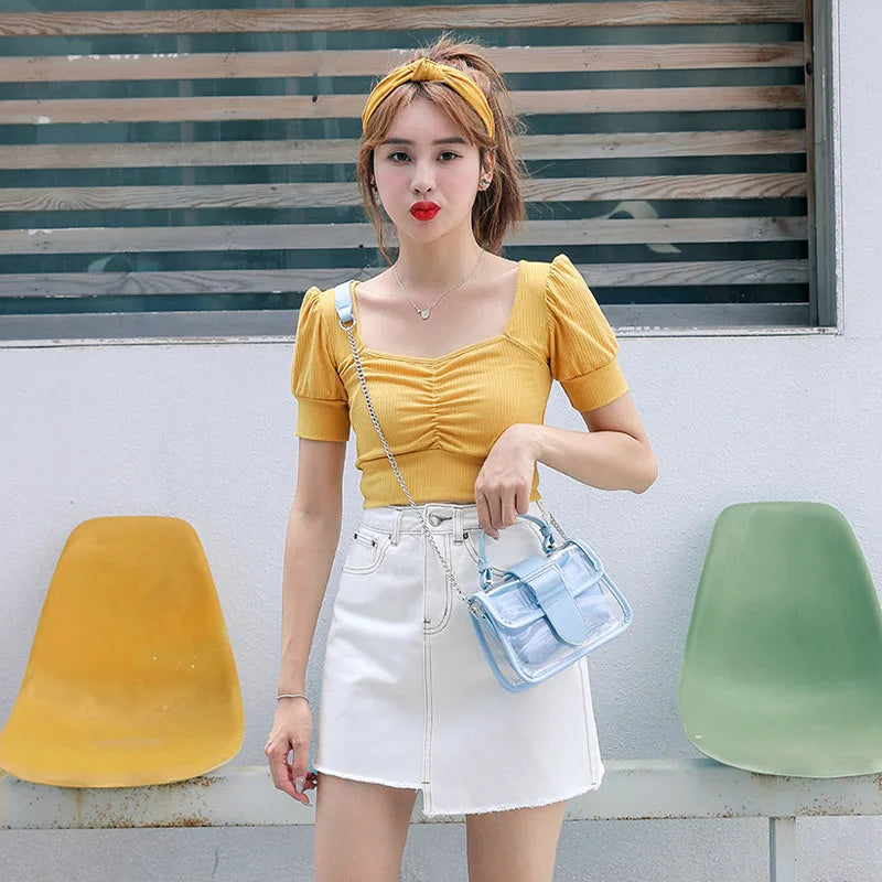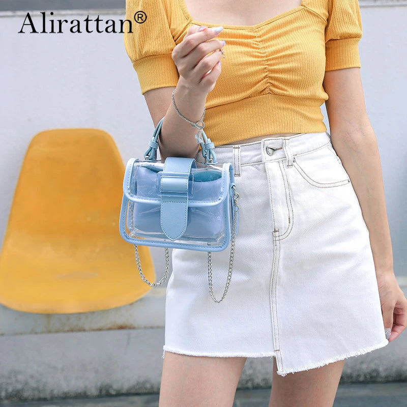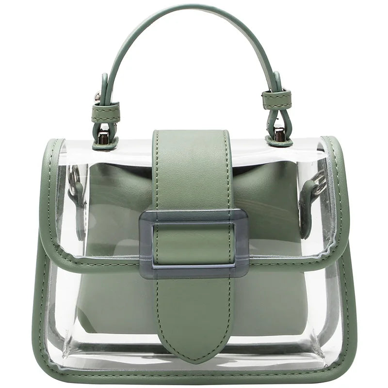 Stay stylish with this sweet, transparent sling bag perfect for summer. It's a trendy messenger bag that can hold your essentials while adding a touch of elegance to your outfit.