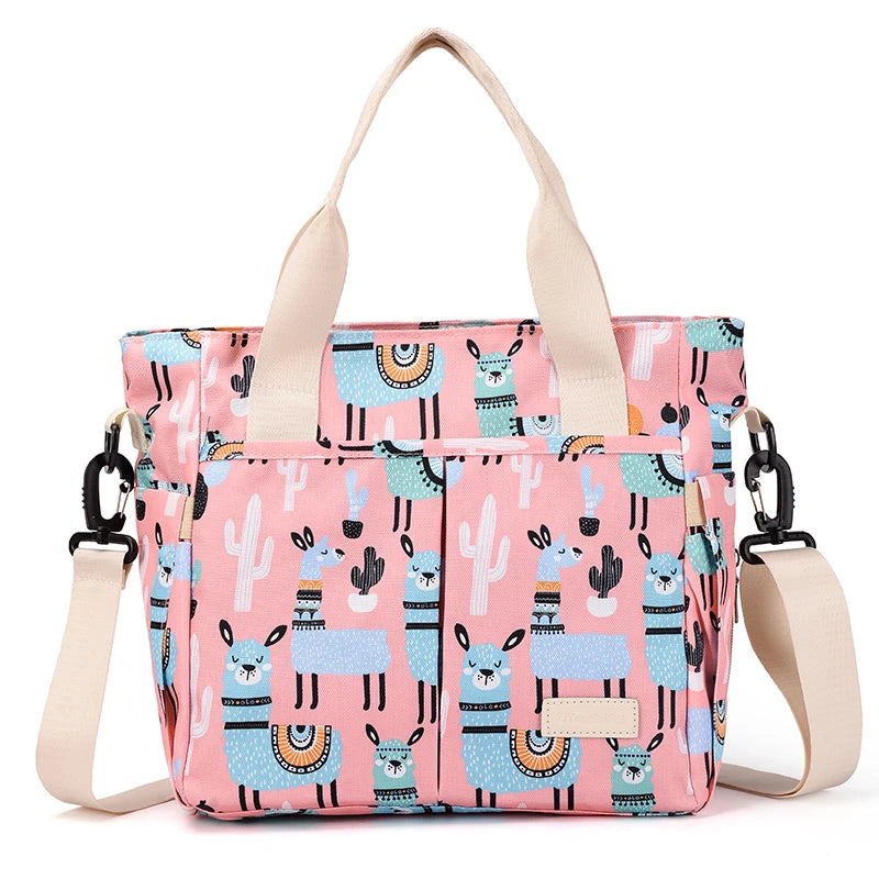 This practical handbag features a cute cartoon printing of alpacas and cacti. Made of Oxford fabric, it's perfect as a mummy bag or everyday shoulder bag.