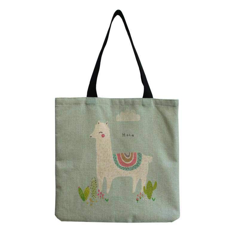 Alpaca Printed Linen Shoulder Bag Reusable Tote Shopping Bag For Women Handbags