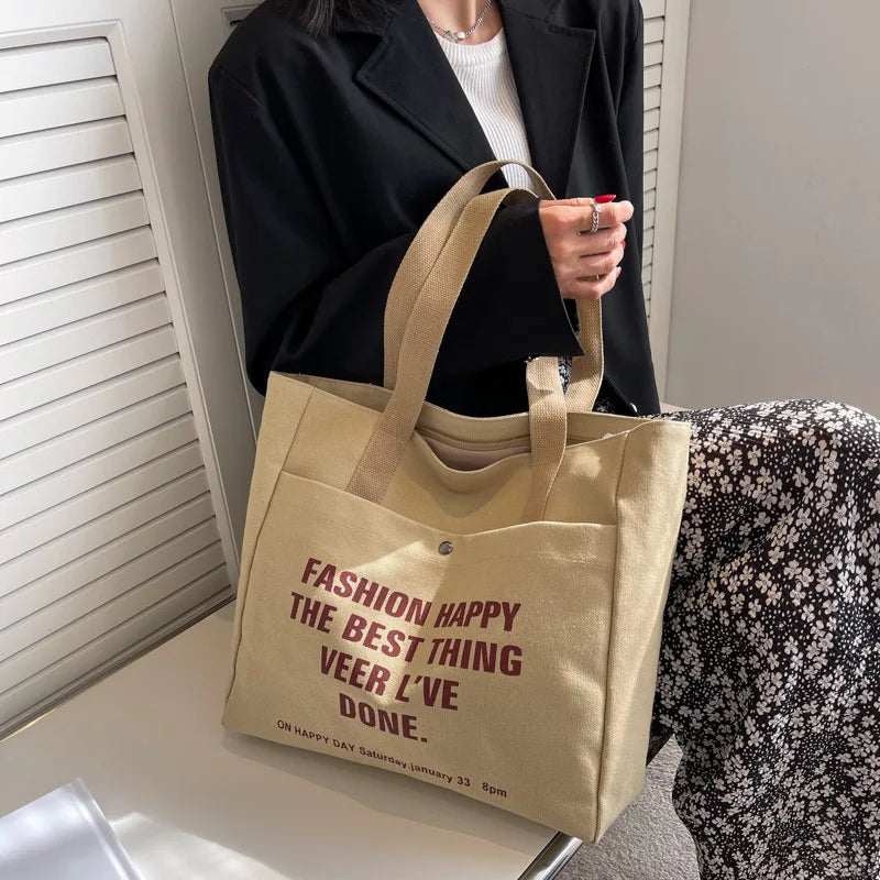 This canvas tote bag features an alphabet print design, perfect for casual outings and shopping. The shoulder handbag is ideal for daily use.