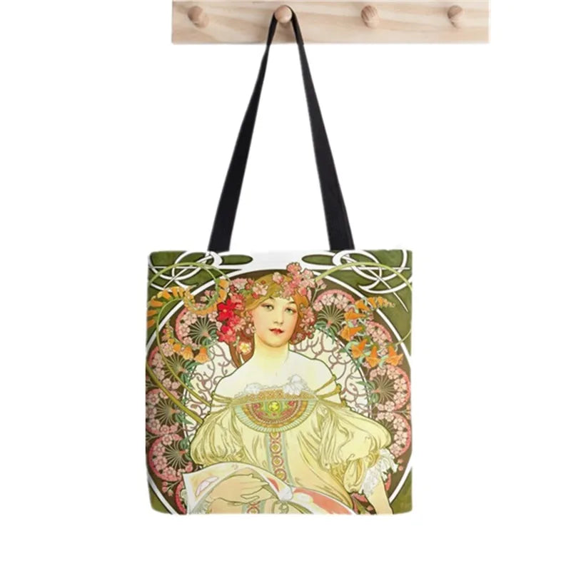 Alphonse Mucha Seasons Printed Tote Bag Women Harajuku Shopper