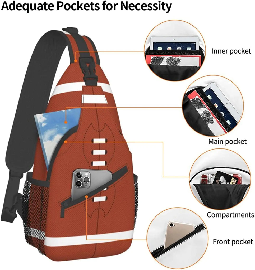 This American Football themed crossbody sling bag is perfect for men and women who love the sport. It is an ideal accessory for carrying essentials while showing off your passion for American Football.