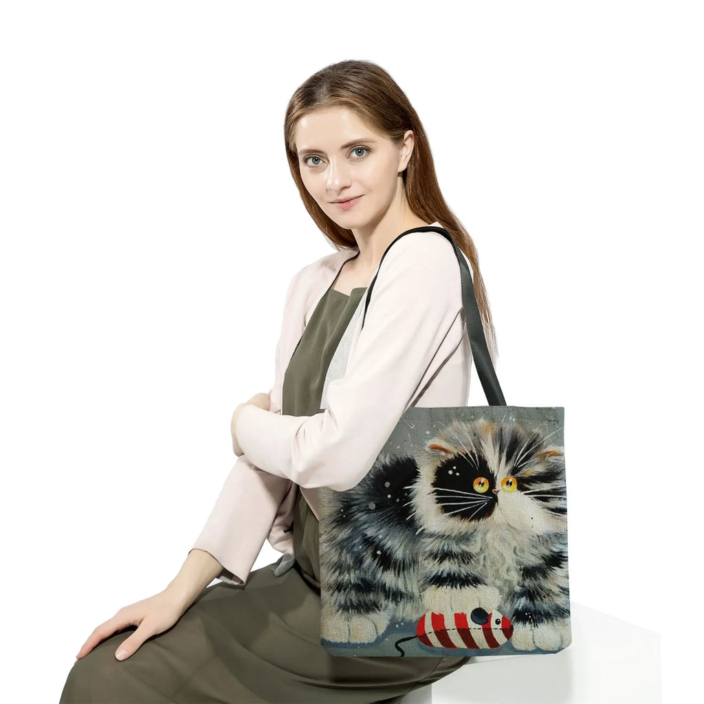 Animal Cat Print Tote Bag Eco Friendly Women Shoulder Bag