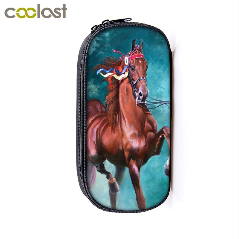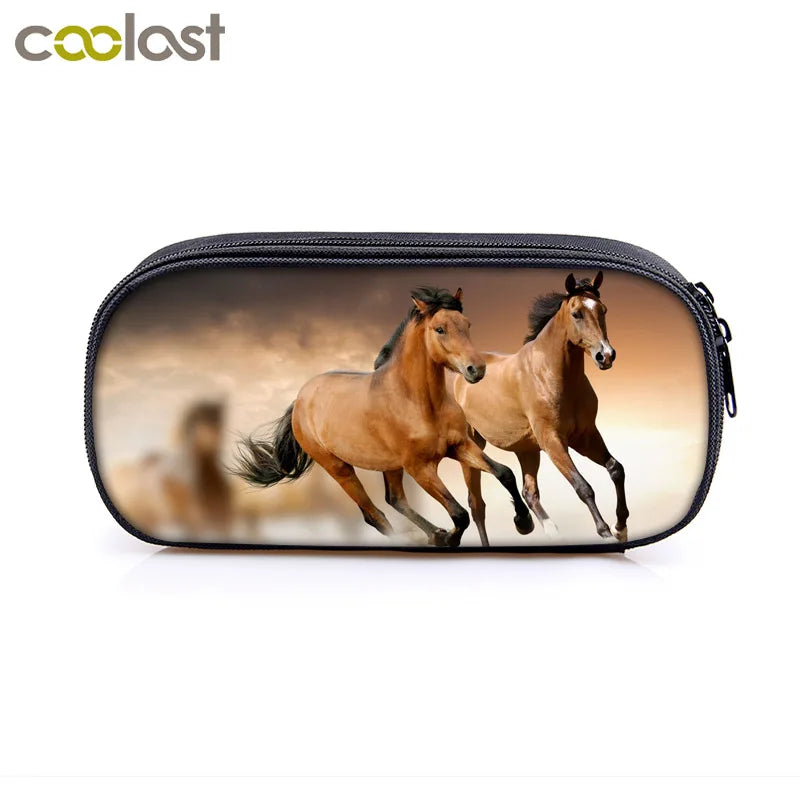 Animal Horse/Pony Print Cosmetic Case Pencil Bag Makeup Girls Boys School Supply