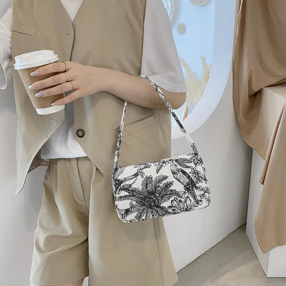 Animal Pattern Print Canvas Shoulder Underarm Bag Women Small Purse Handbags