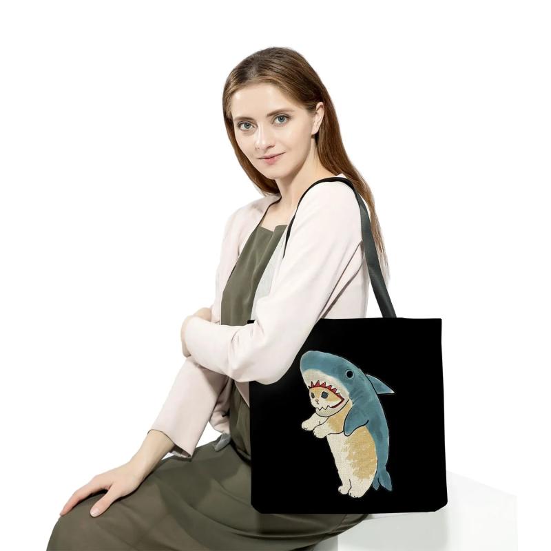 Description:This stylish tote bag features animal print designs, perfect for travel, shopping, or outdoor activities. Made of eco-friendly materials, it offers high capacity and durability.Features: Eco-friendly animal print tote bag for ladies Ideal for travel, shopping, or outdoor use High capacity and reusable design Features trendy shark and cat prints...