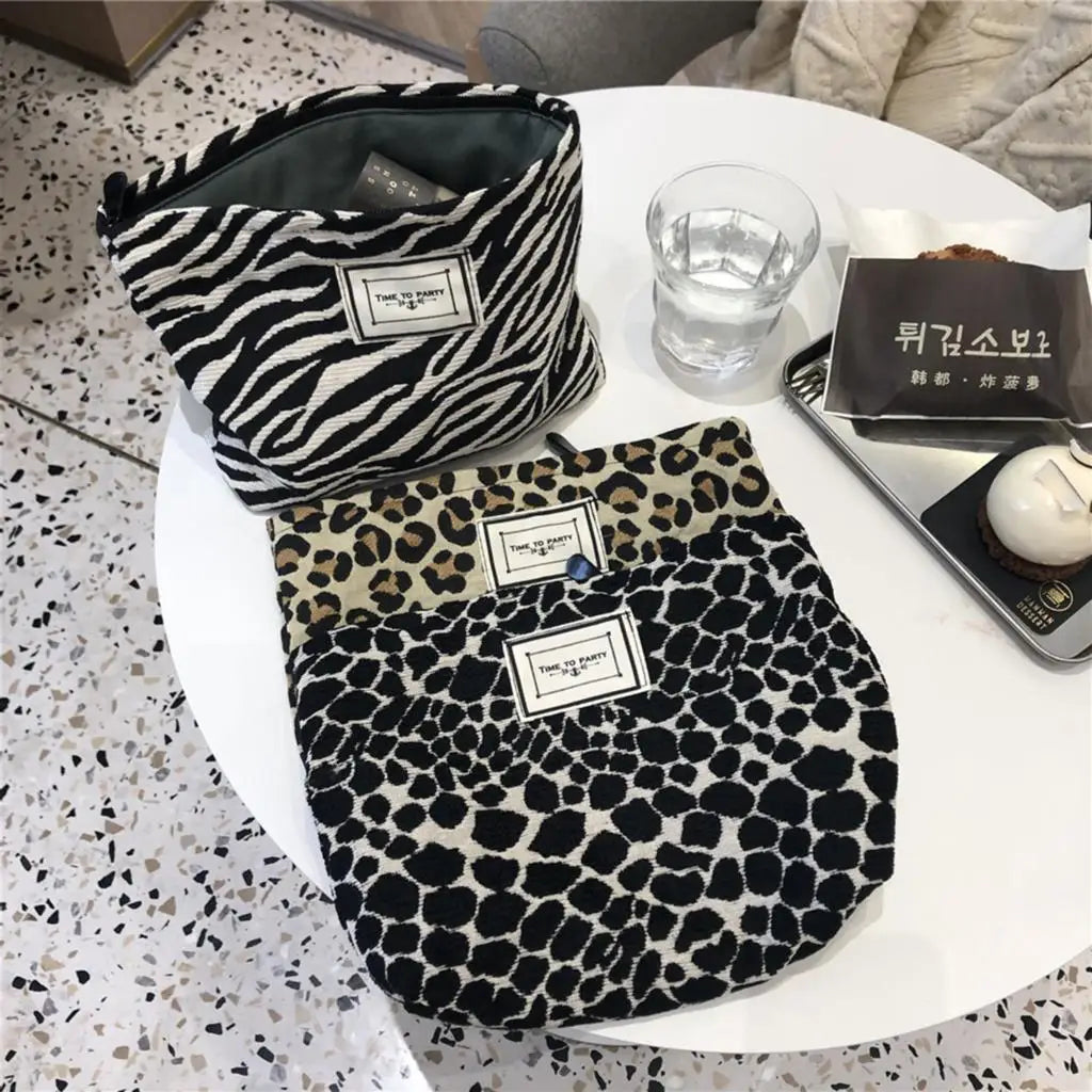 Animal Print Makeup Bag Lightweight Cosmetic Organizer Zipper Handbag