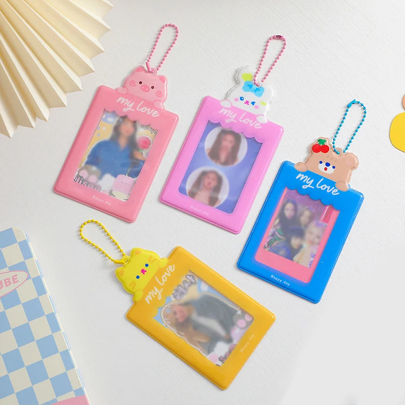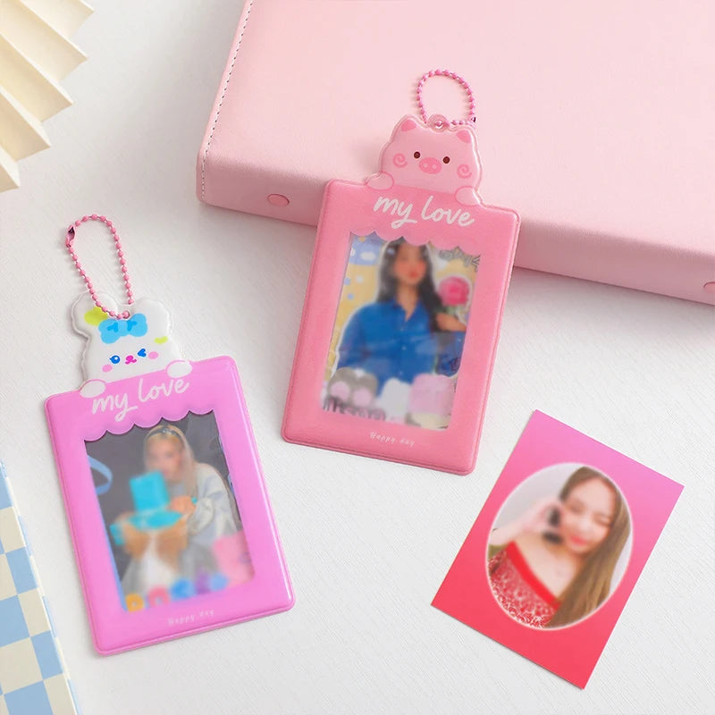 This cute cartoon photo holder card case features animal prints, perfect for holding student ID cards or meal cards. It includes pendant card holder sleeves.