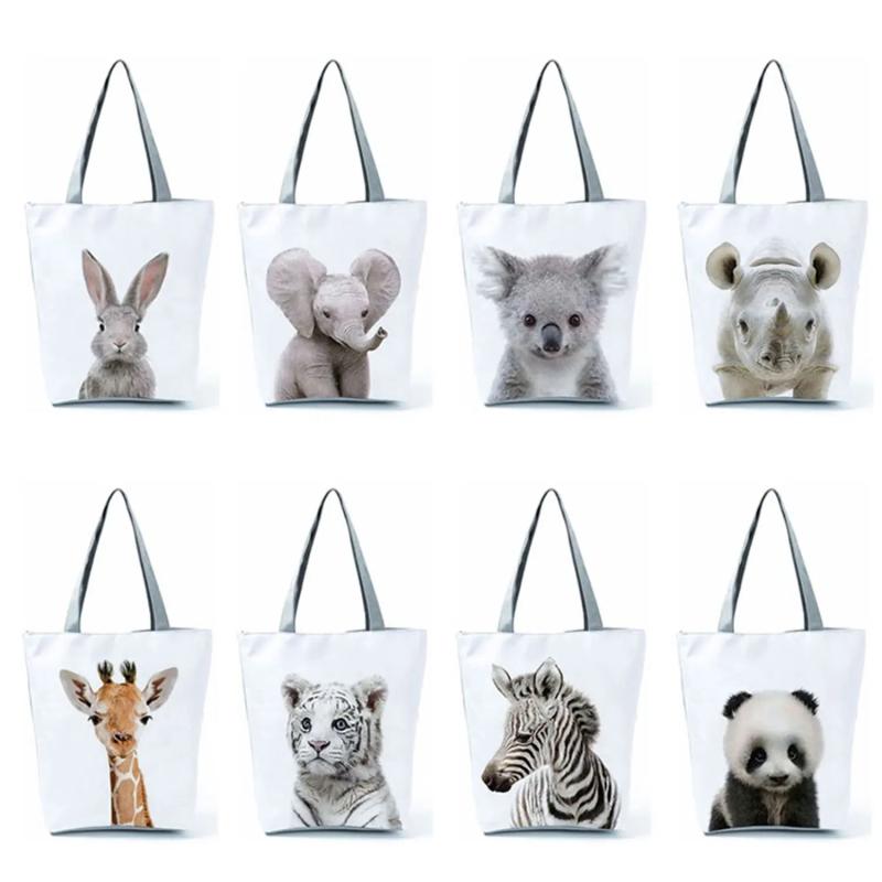 Animal Print Women Handbag Casual Tote Bags Large Capacity Panda Koala Elephant