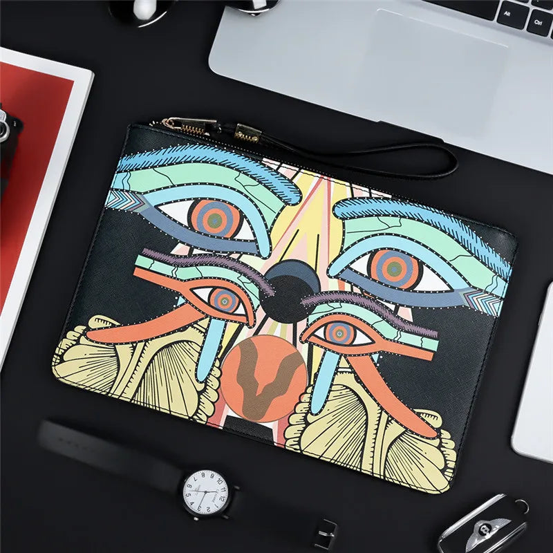 This clutch handbag features trendy animal prints and offers ample storage space for your essentials. It can be used as a stylish cell phone bag for men and women.