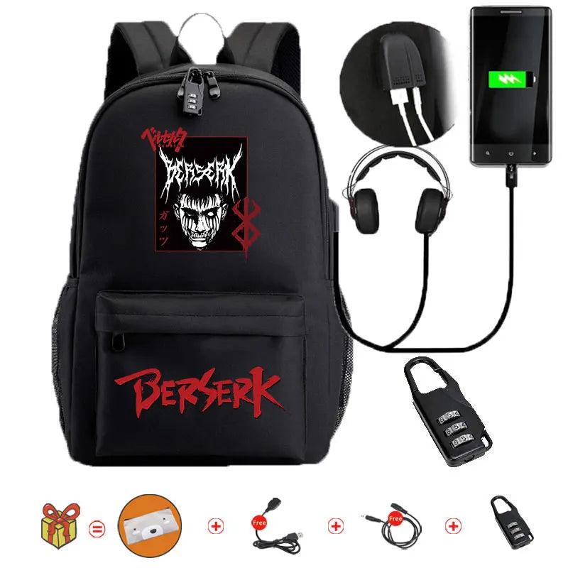 Anime Berserk School Bag Backpack USB Teenagers Backpack Kids Bag