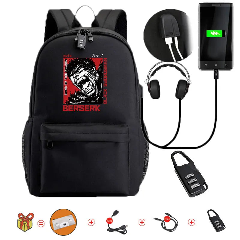 This Berserk anime backpack is perfect for school or casual use. The design is inspired by Japan's Harajuku style, making it a cool and trendy choice for boys and girls.