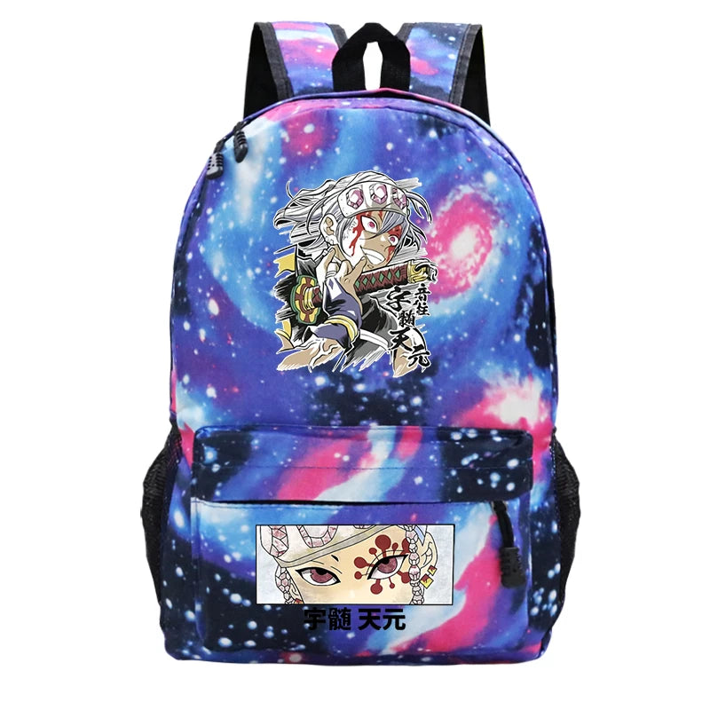 This school backpack features Tengen Uzui's eyes from the anime Demon Slayer. Perfect for manga fans and students.