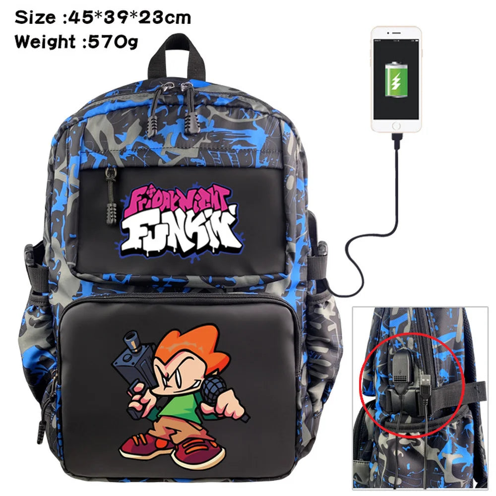 Anime Friday Night Funkin Nylon Backpack USB Schoolbag Laptop Bag