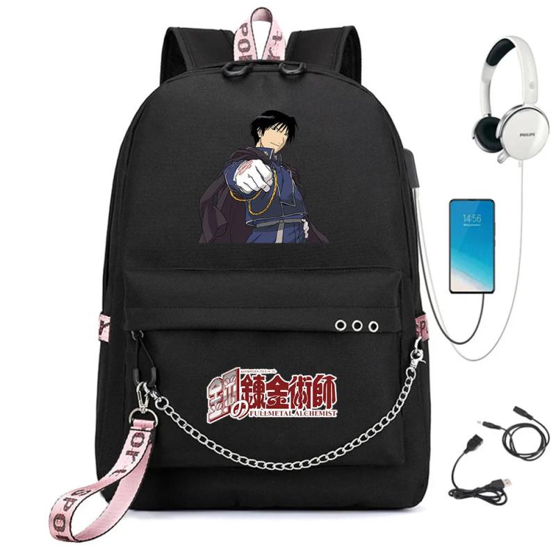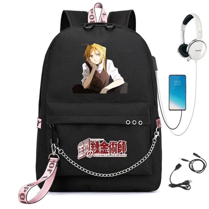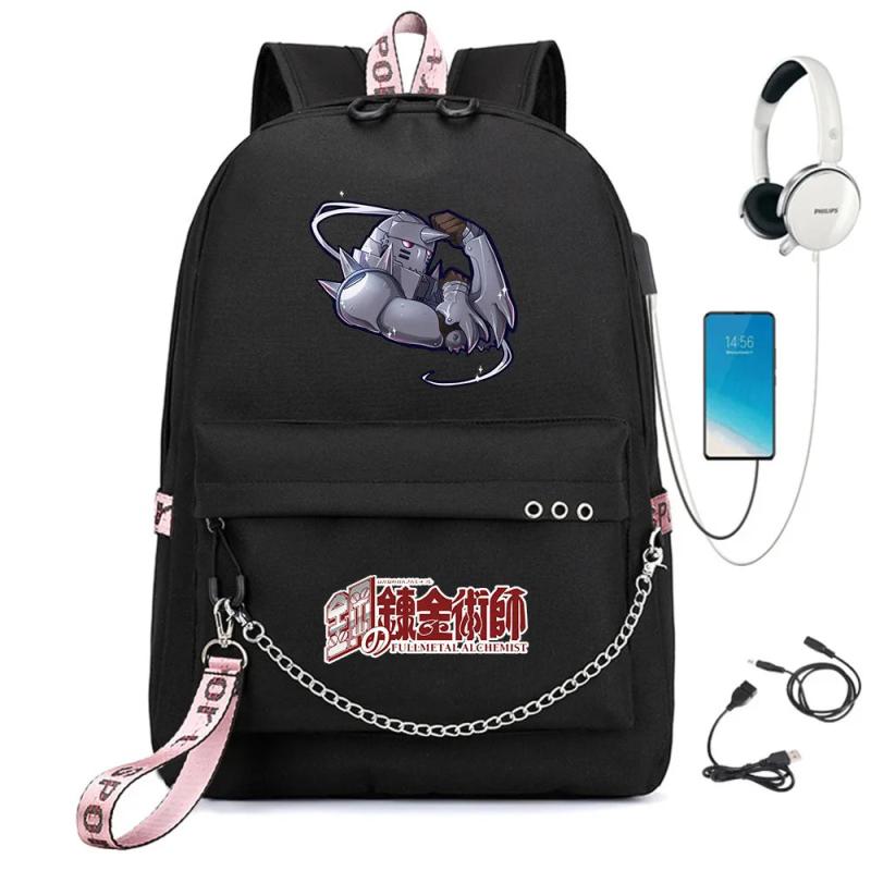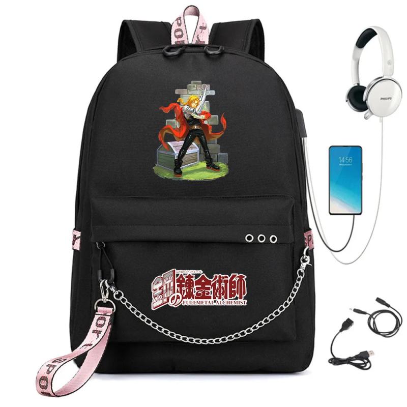 Anime Fullmetal Alchemist Nylon Backpack Schoolbag USB Cartoon Teenger Travel La