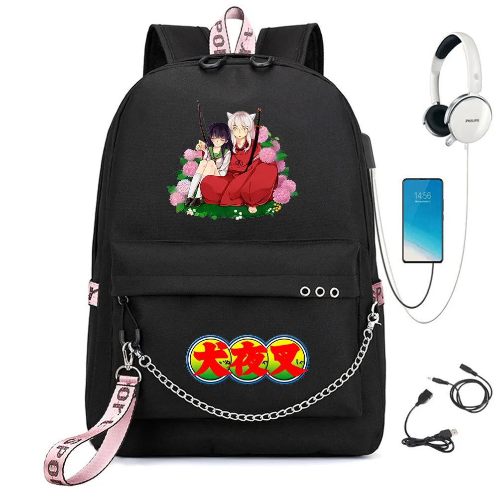 Anime Inuyasha Backpack USB Charging Headphone Unisex Schoolbag