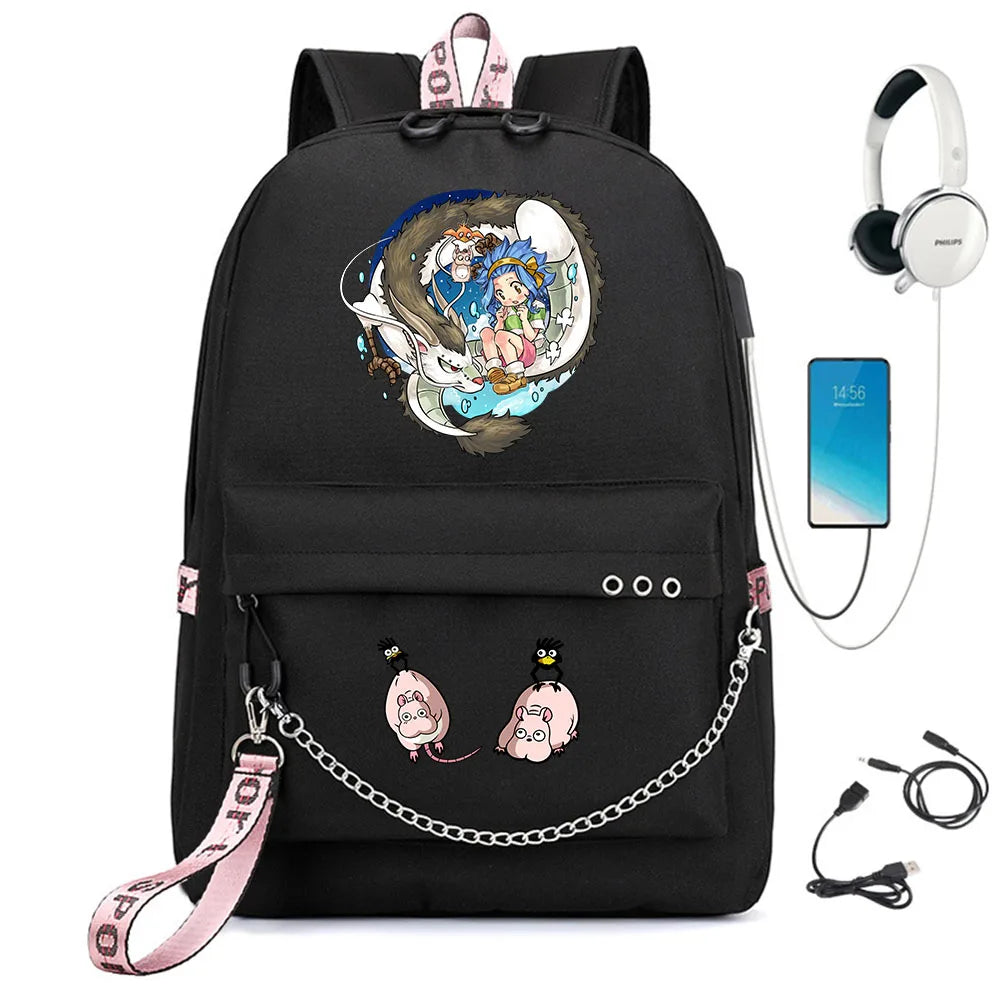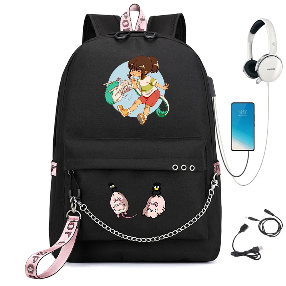 Anime Spirited Away Nylon Backpack Schoolbag with USB Charge