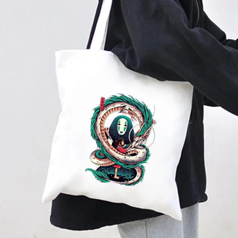 Anime Spirited Away Totoro Women Canvas Shoulder Bags Harajuku Totes