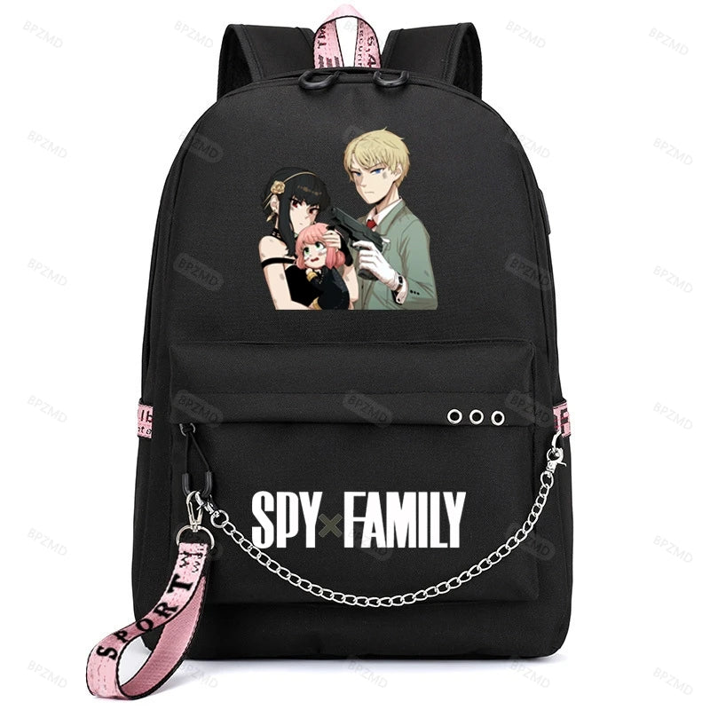 This SPY x FAMILY anime backpack is perfect for school, camping, or travel. It features a USB charging port for convenience.