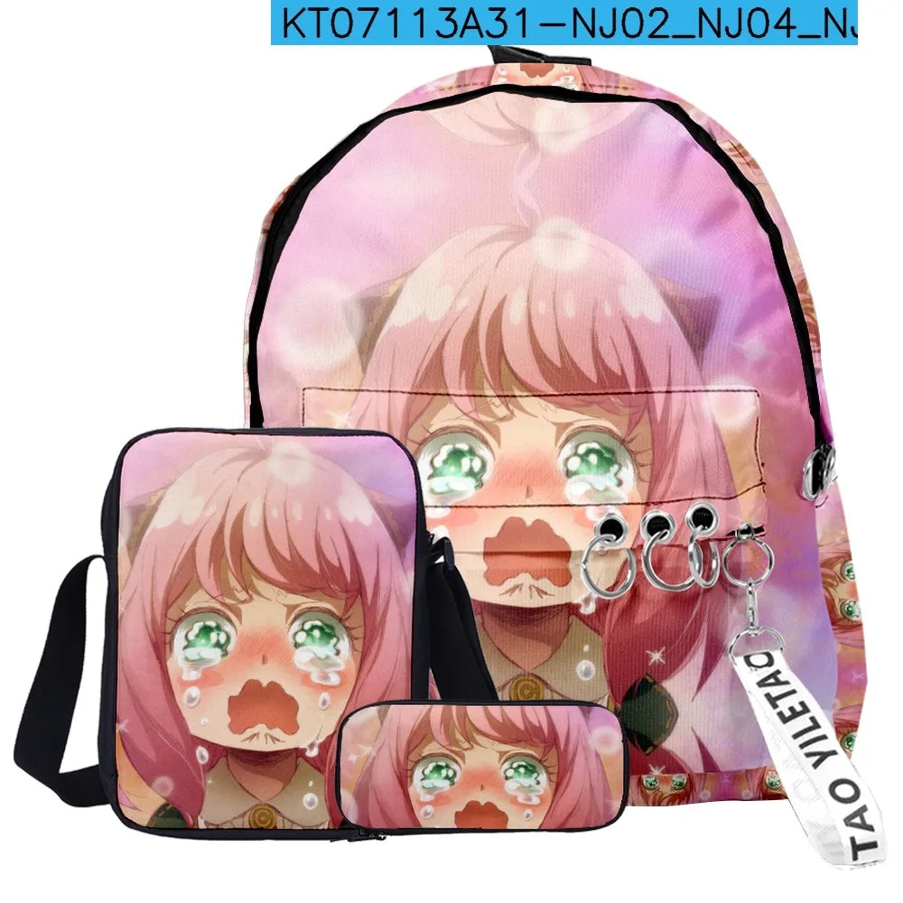 This 3-piece set includes a backpack, chest bag, and laptop backpack featuring characters from the anime Spy X Family. Perfect for students and teens for school or travel.