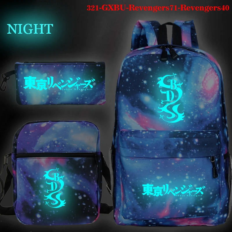 Anime Tokyo Revengers Children Schoolbag Luminous Cartoon Print Backpack