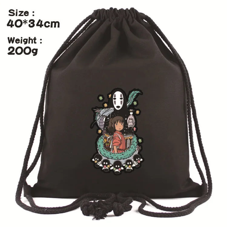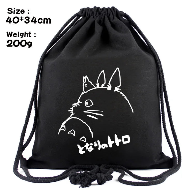 Anime Totoro Backpack Schoolbags Canvas Drawstring Bagpack