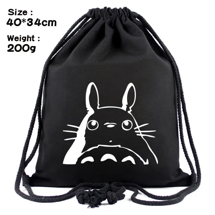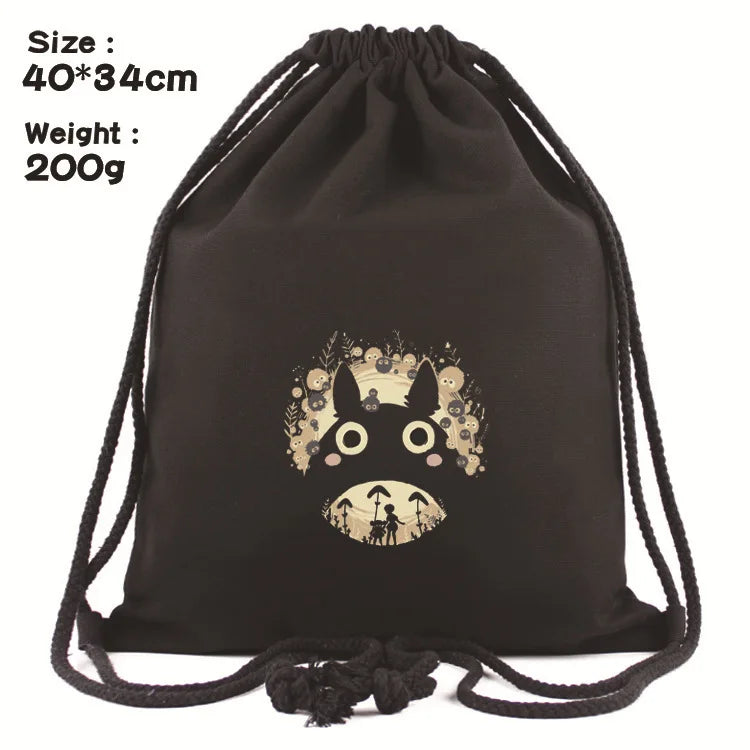 This canvas drawstring backpack features Totoro design, ideal for teenagers and kids going to school. Suitable for both boys and girls.
