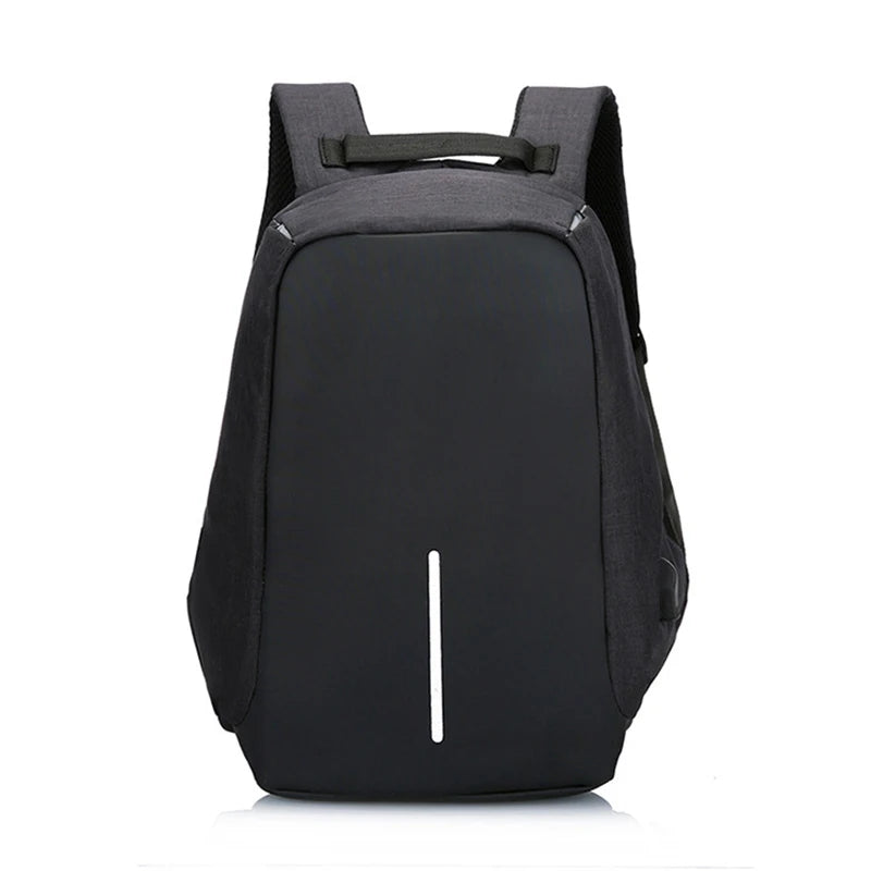 This anti-theft backpack is designed for men and women, featuring a large capacity for business and travel use. It includes a USB charging port for convenient device charging on the go.