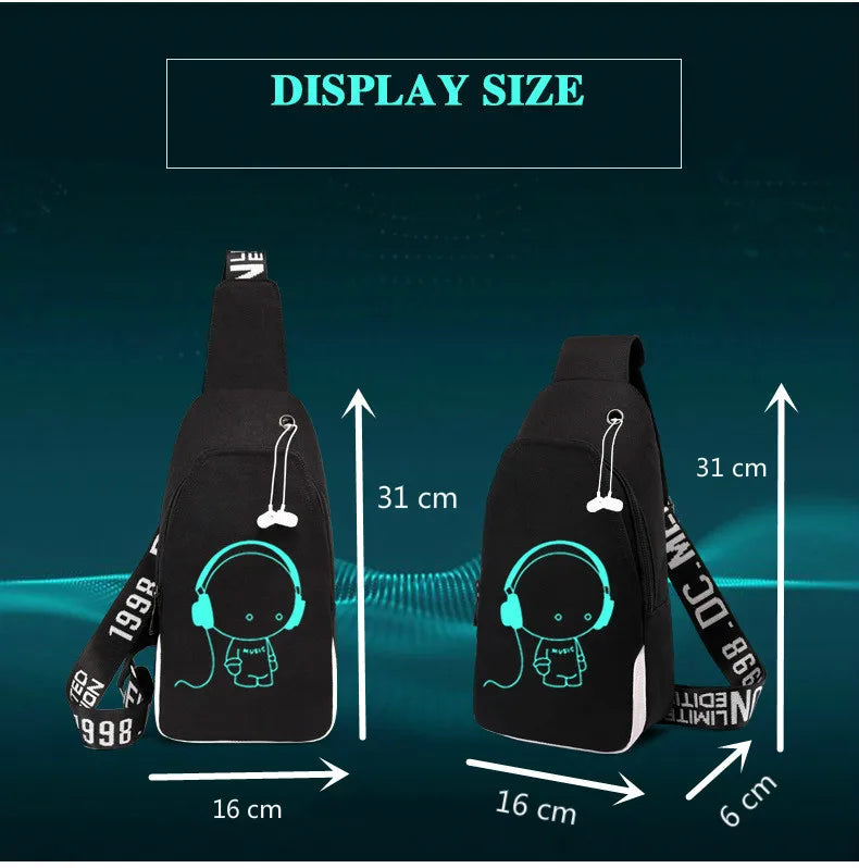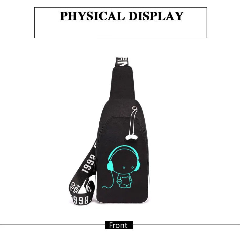 Anti Theft Luminous USB Charging Crossbody Bag Waterproof Travel Shoulder Bag