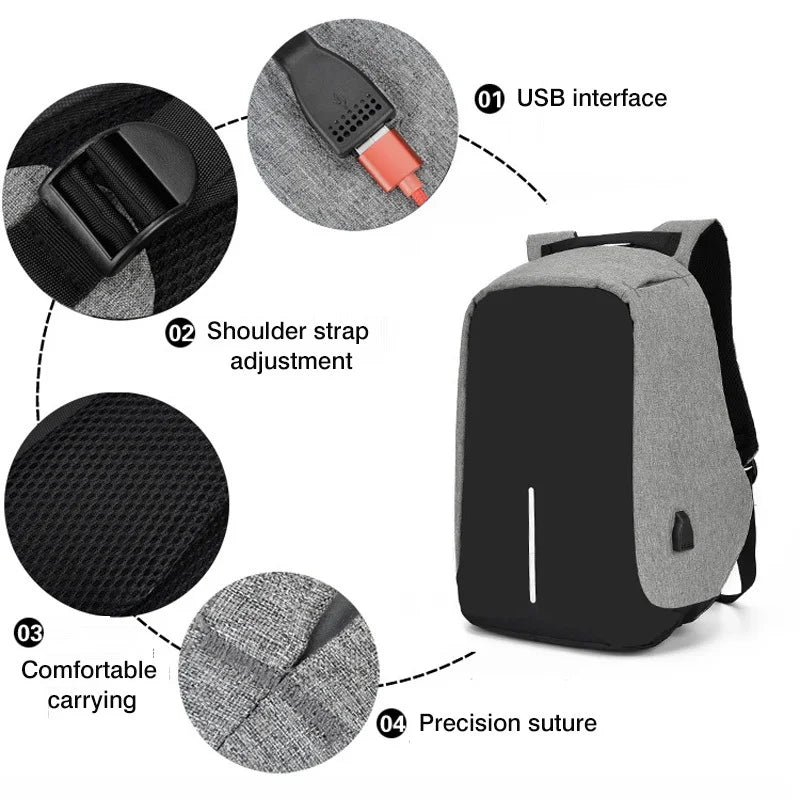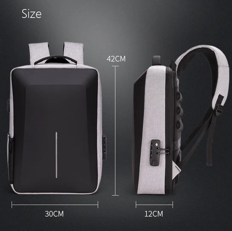 This anti-theft bag is designed for business professionals, featuring a 15-inch laptop compartment and USB rechargeable port. It is waterproof and perfect for travel.