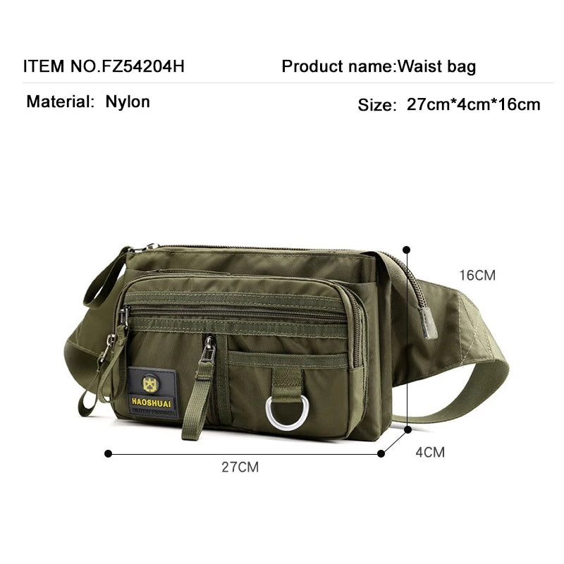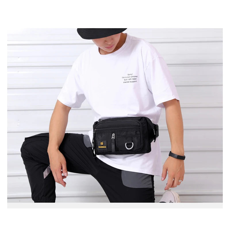 This waist bag features a money pocket, phone chest, and waterproof nylon material, making it perfect for outdoor activities. The zipper closure ensures your belongings are secure.
