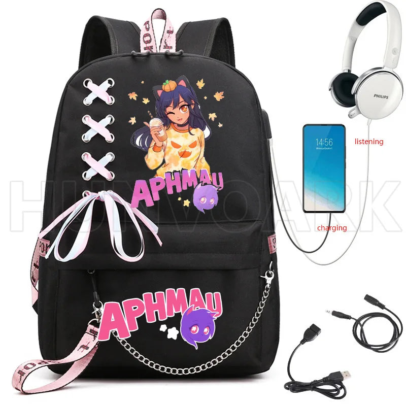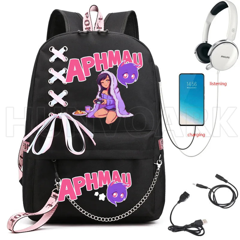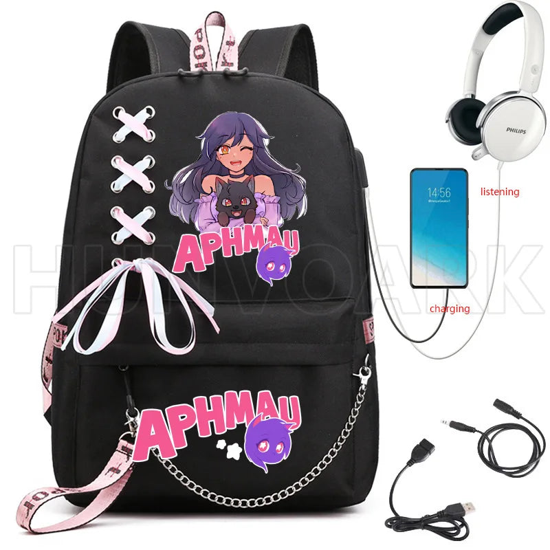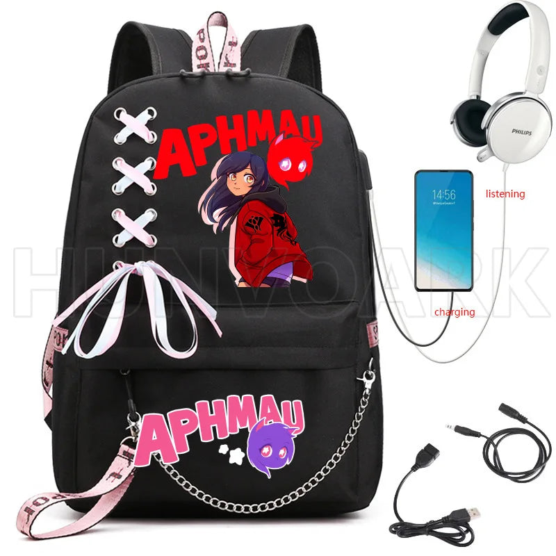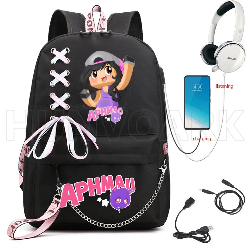 Aphmau Backpack USB Charging Laptop Backpack High School Bag
