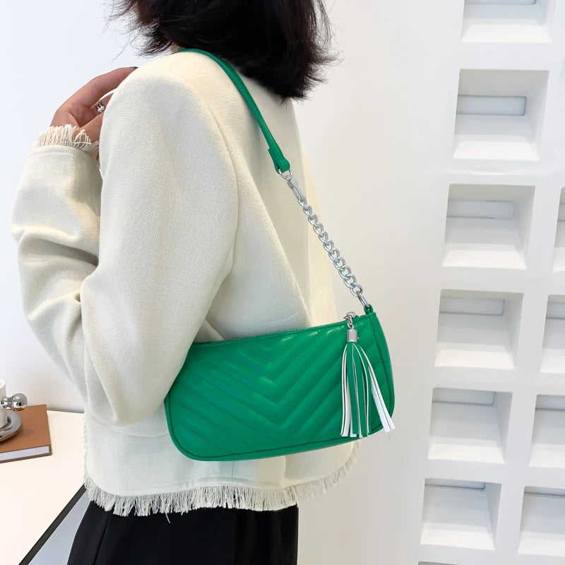 Armpit Ladies Shoulder Bag Small PU Leather Underarm Purse Embroidery Tote Handb