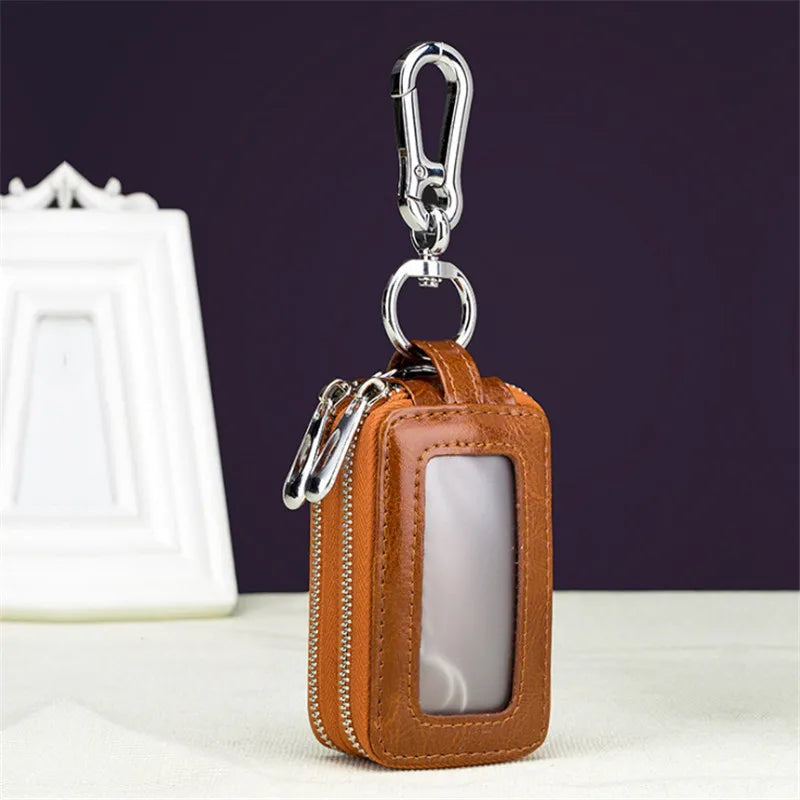 Keep your car keys organized and secure with this multifunctional leather key holder featuring a double zipper design.