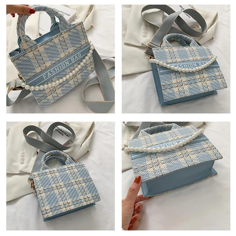 Arrival Square Shoulder Bag Women Flower Handbags Plaid Tote