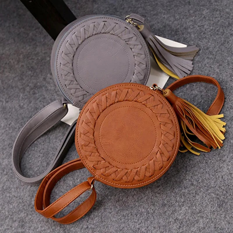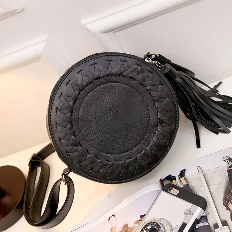 Arrival Women Bag PU Leather Shoulder Bag Tassel Round Vintage Beach Bag