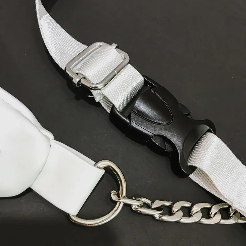 Stay stylish and organized on the go with this versatile waist bag. It features a chain design, zipper closure, and is perfect for travel or hip-hop fashion.